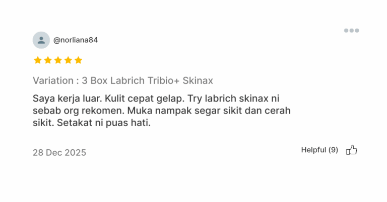 Skin radiance lebih ketara, kulit nampak lebih anjal & sihat. Wajah kelihatan glowing walaupun tanpa makeup tebal.