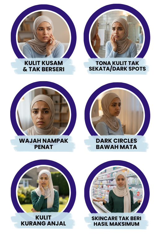 Dark spots, redness & tanda keletihan mula berkurang. Kulit nampak lebih cerah dan berseri secara semula jadi.